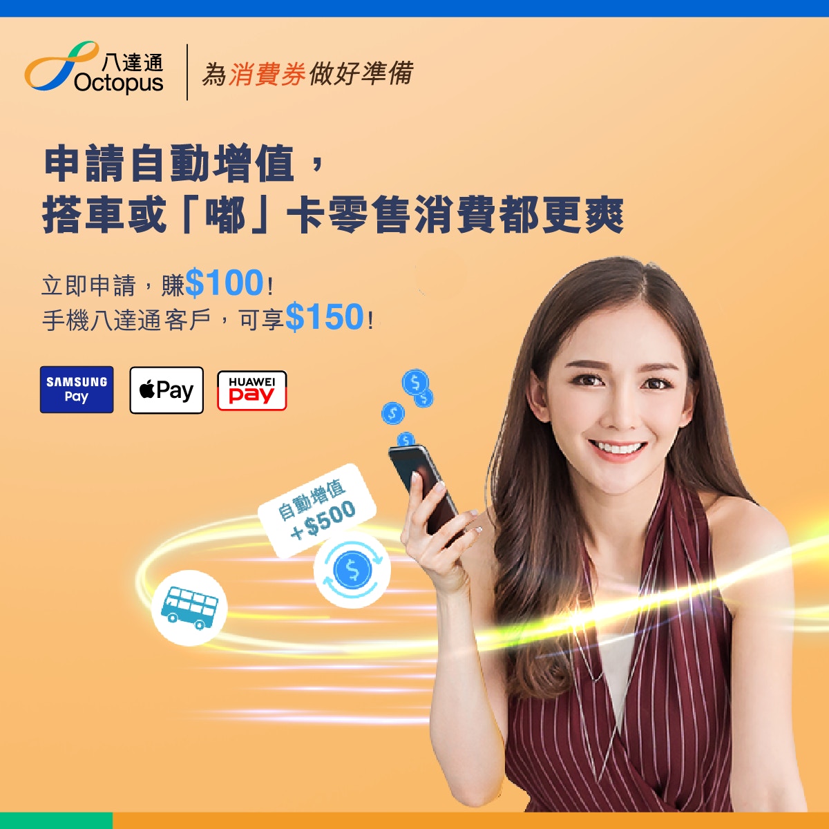 Jun 07, 2021 · 政府早前宣布將派發$5,000電子消費券,屆時消費者可透過各類型八達通卡領取及使用,八達通公司較早前宣布,即日起至今年8月31日期間,新客戶如將八達通卡轉移至iphone或apple watch,並進行一次消費交易,即可獲贈港幣100元八達通增值額的迎新優惠,如在iphone. Jun 30, 2021 · 全城熱烈討論嘅消費券終於有消息喇!嚟緊最快7月4日就可以登記,但咁多間營運商應該揀邊間先最好?識揀就梗係要揀八達通啦~事關領取方法方便快捷又夠靈活之餘,八達通仲有獨家回贈賞你高達$118回贈,再加埋逾$3,000商戶優惠,等你可以賺超過$5,000! Jun 09, 2021 · 一般來說有甚麼情況,會需要從八達通增值到八達通 app?有!例如如果你的八達通申請了自動增值,有些朋友會利用自動增值的方法,去刷積分或者里數,而如果你用你的八達通領取了電子消費券,在未用完 $5000 之前,你都無法用這種方式刷積分里數。 Jun 09, 2021 · 八達通回覆查詢指,安排是為了確保消費券用於支付本地消費,如用戶需定期使用八達通卡增值八達通銀包,如有自動增值服務,就要選用另一張八達通卡領取消費券,亦可設立轉數快,由銀行戶口轉賬至八達通銀包增值。 Jun 28, 2021 · 八達通發聲明指,以長者八達通領取消費券,絕不影響使用2元乘車優惠,而且領取電子消費券前,亦不必事先將儲值限額升至3000元,因領取第一期消費券時,限額將會自動提升,強調市民毋須額外去辦理提升儲值限額的手續。